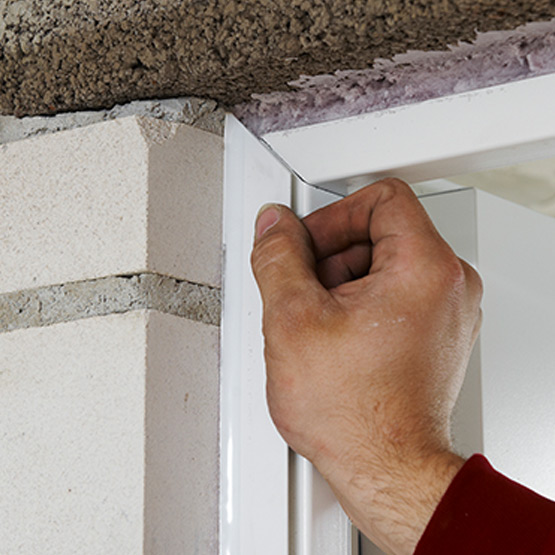Je nach Befestigungsvariante kann der Übergang zwischen Zarge und Wand nun beigeputzt oder (auf der Bandgegenseite) mit einem optional erhältlichen selbstklebenden und übersteichbaren Kunststoffprofil mit Weichlippe sauber abgedeckt werden.