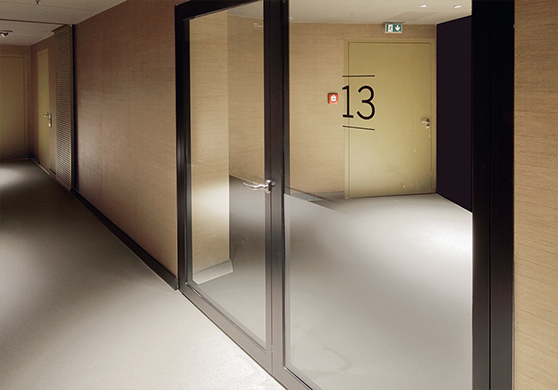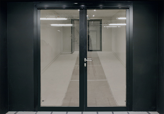 Alle in der Elbphilharmonie verbauten Rohrrahmentüren sind deckenbündig angelegt und weisen keine mittigen Querriegel auf. Hier handelt es sich um halböffentliche Bereiche, bei denen eine gewisse Ortskundigkeit der Nutzer angenommen werden kann. Verzichtet werden konnte auch auf horizontale Panikstangen und es war zulässig, reguläre Drückergarnituren zu montieren. Produktmanager Lohmann betont, dass die Türen trotz ihrer exklusiven Ausführung in puncto Sicherheit den normalen Rohrrahmenvarianten ebenbürtig sind: Auch sie wurden in der Qualität Rauchschutz (RS) ausgeliefert und haben dazu eine ausfahrbare Gummilippe, die sich im geschlossenen Zustand auf den wertvollen Holzfußboden absenkt.