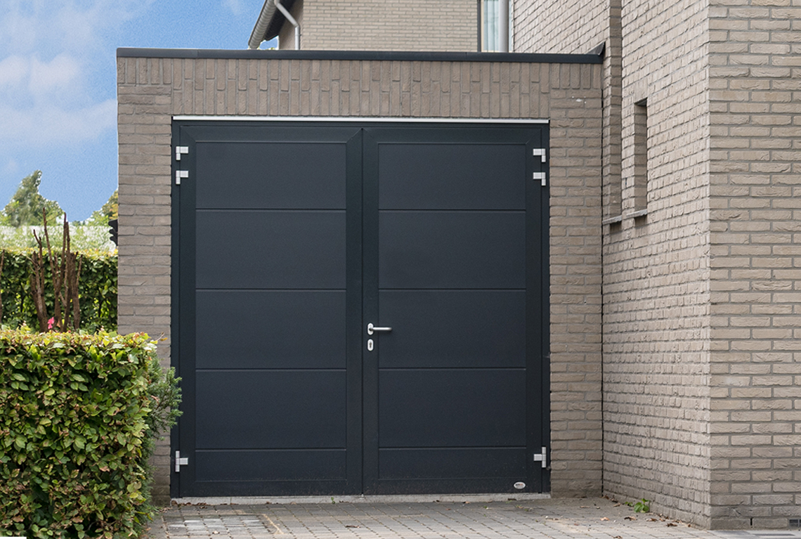 Οι πόρτες που ανοίγουν προς τα μέσα μειώνουν τον εσωτερικό χώρο, αλλά προσφέρουν περισσότερο χώρο μπροστά από το γκαράζ. Μπορείτε να προμηθευτείτε ανοιγόμενες πόρτες για το γκαράζ σε πολλά χρώματα, μοτίβα, επιφάνειες και μεμονωμένα σχέδια, καθώς και με ή χωρίς τζάμια. Έτσι εξασφαλίζεται ότι η ανοιγόμενη γκαραζόπορτα ταιριάζει απόλυτα με το κτίριο. Για να διασφαλιστεί η ομαλή λειτουργία του μηχανισμού κίνησης της ανοιγόμενης πόρτας, οι πόρτες διαθέτουν σταθερούς μεντεσέδες 3D που σας επιτρέπουν να ρυθμίζετε την ανοιγόμενη πόρτα εύκολα και με ακρίβεια. Οι τρισδιάστατοι μεντεσέδες διατίθενται επίσης στο χρώμα της ανοιγόμενης πόρτας με επιπλέον χρέωση.